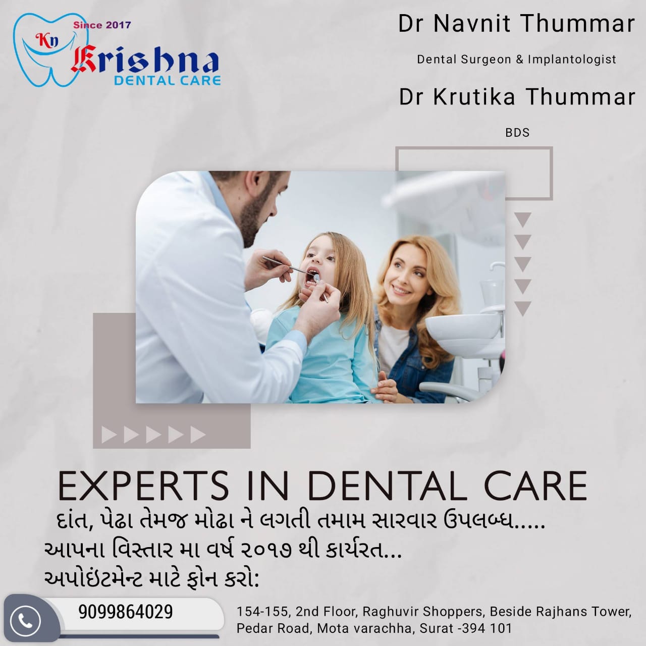 Krishna Multi Specialty Dental Hospital located in Mota Varachha Surat since 2017.